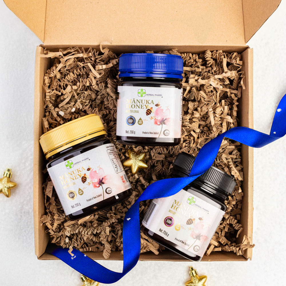 Zestaw Świąteczny Miód Manuka 100+ MGO, 300+ MGO & 500+ MGO – potrójna siła natury prosto z Nowej Zelandii